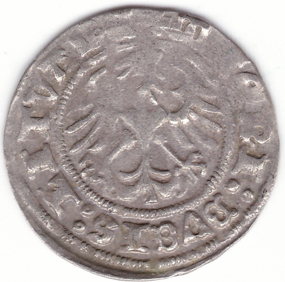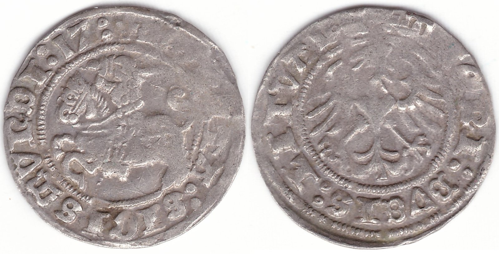 Žygimanto Senojo lietuviškas pusgrašis, 1512 m., 3 Vytis ir 3 Erelis pagal mūsų knygą. H40 AF. Klaida reverso legendos paskutiniame žodyje LITVANE. Vilniaus kalykla, sidabras 375.