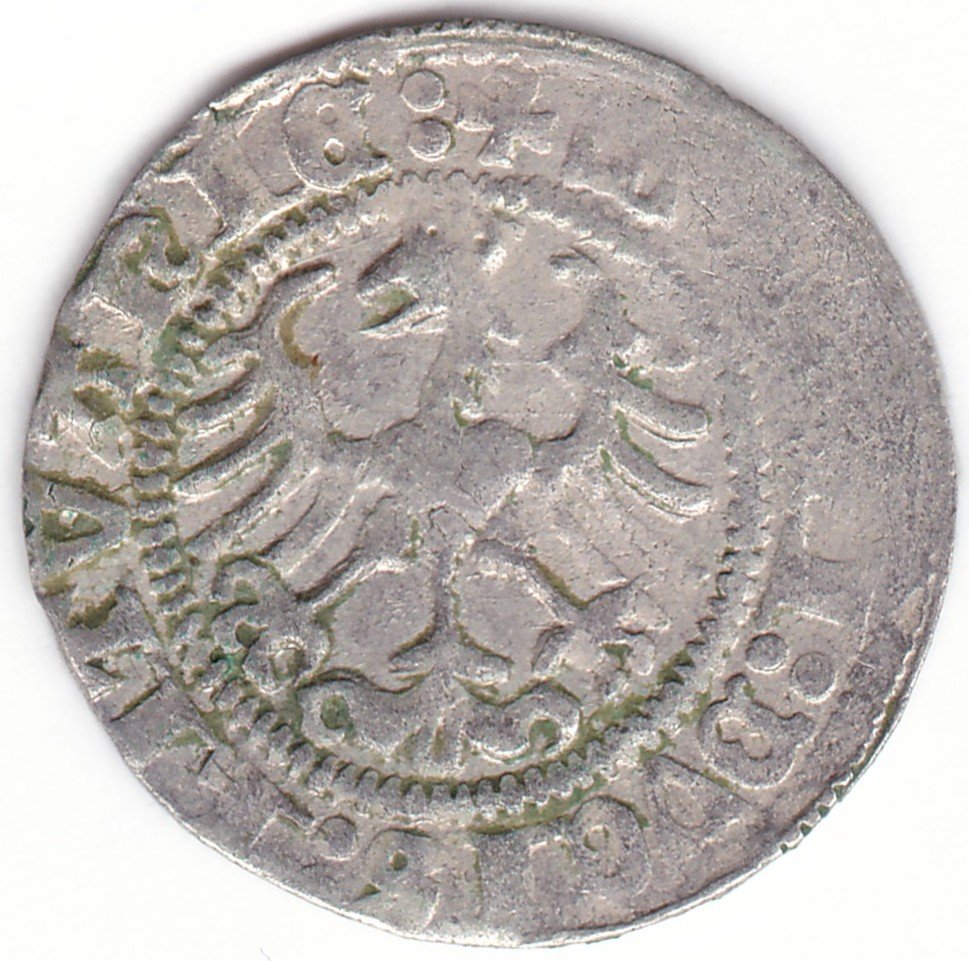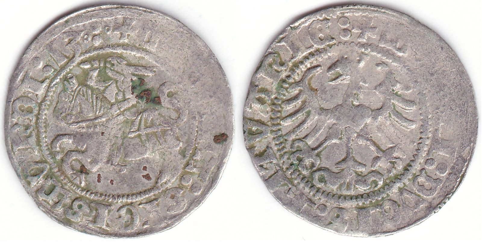 Žygimanto Senojo lietuviškas pusgrašis, 1513 m., 3 Vytis ir 3 Erelis pagal mūsų knygą. H41 AI1. Vilniaus kalykla, sidabras 375.