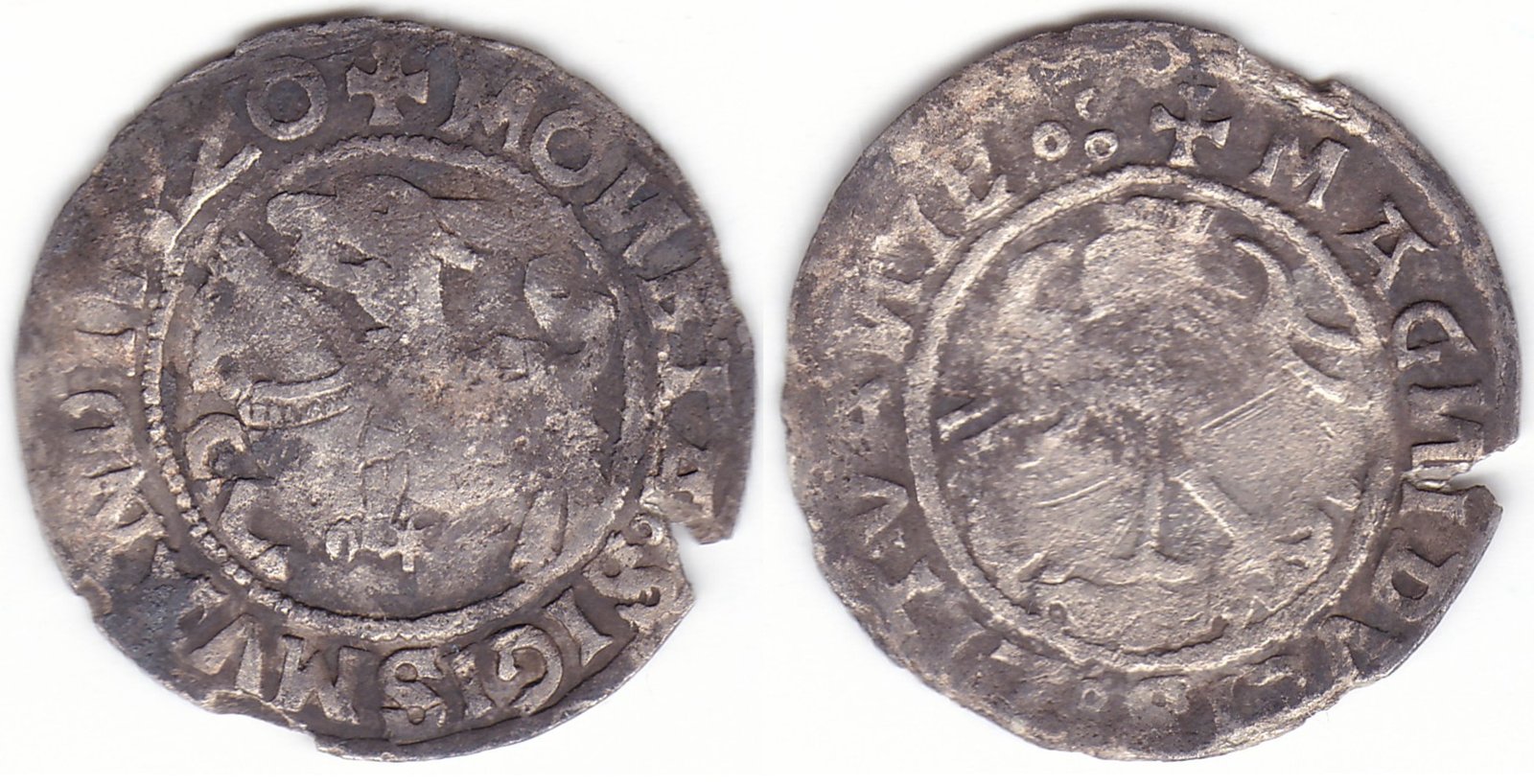 Be the first to review “H74 E. Žygimanto Senojo lietuviškas pusgrašis, 1520 m.”
