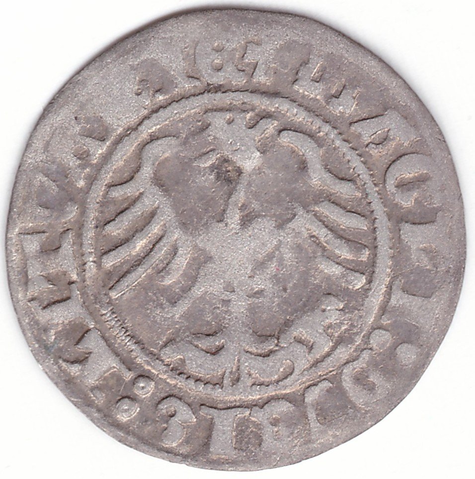 Žygimanto Senojo lietuviškas pusgrašis, 1512 m., 3 Vytis ir 3 Erelis pagal mūsų knygą. H40 AA. Taisyta data iš 1511 į 1Z. Vilniaus kalykla, sidabras 375.