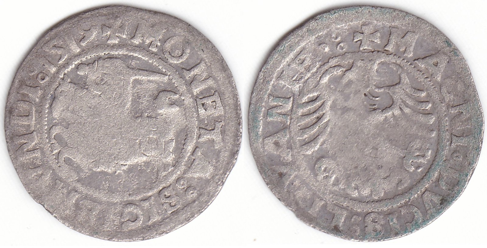 Žygimanto Senojo lietuviškas pusgrašis, 1519 m., 8 Vytis ir 9-A Erelis pagal mūsų knygą. H70′. Vilniaus kalykla, sidabras 375.