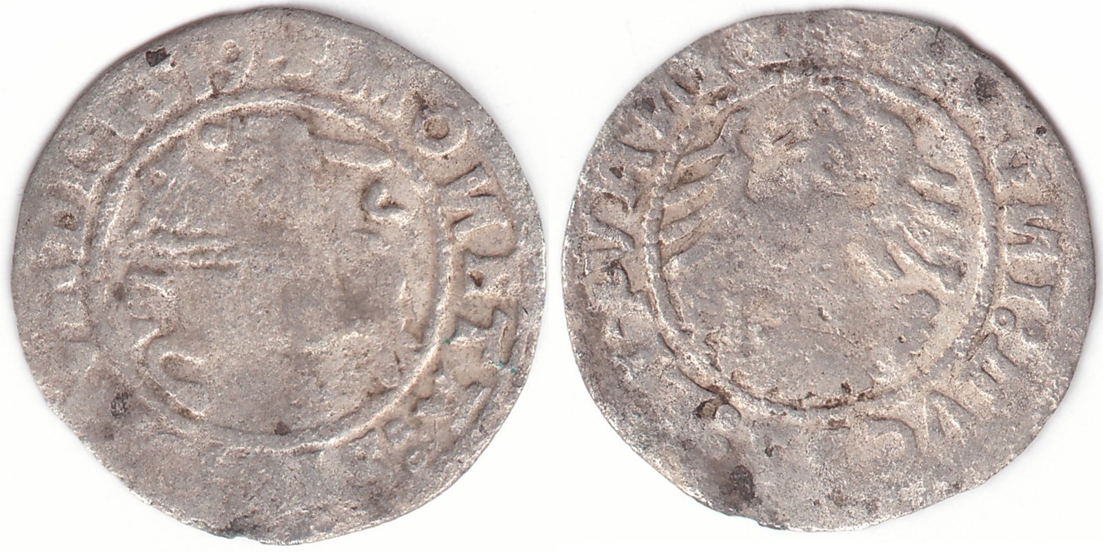 Žygimanto Senojo lietuviškas pusgrašis, 1519 m., 8 Vytis ir 10 Erelis pagal mūsų knygą. H71 B2. Averso ir reverso legendoje raidės N veidrodinės. Reverso legendoje taisymai žodžiuose DVCIS ir LITVANIE. Vilniaus kalykla, sidabras 375.
